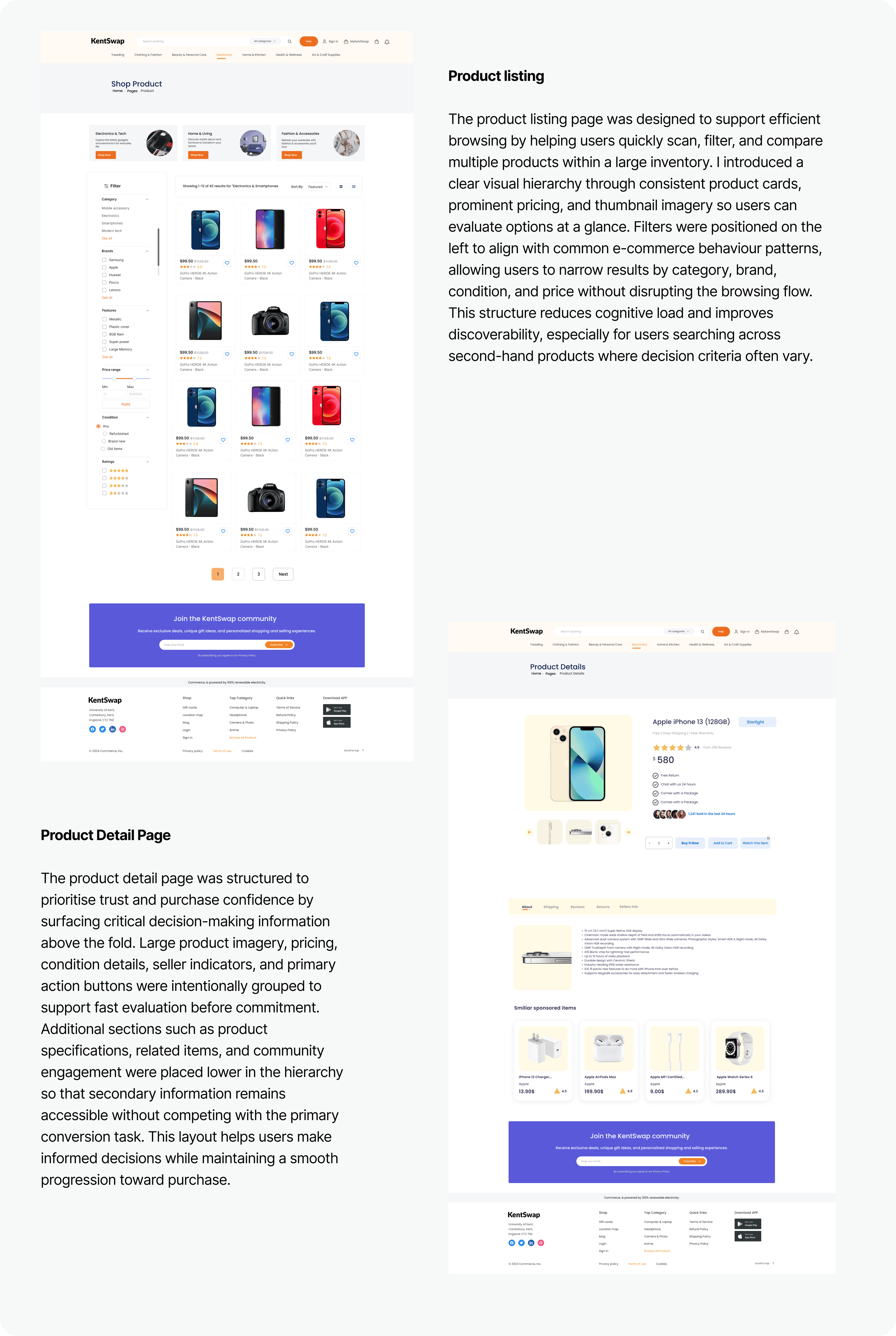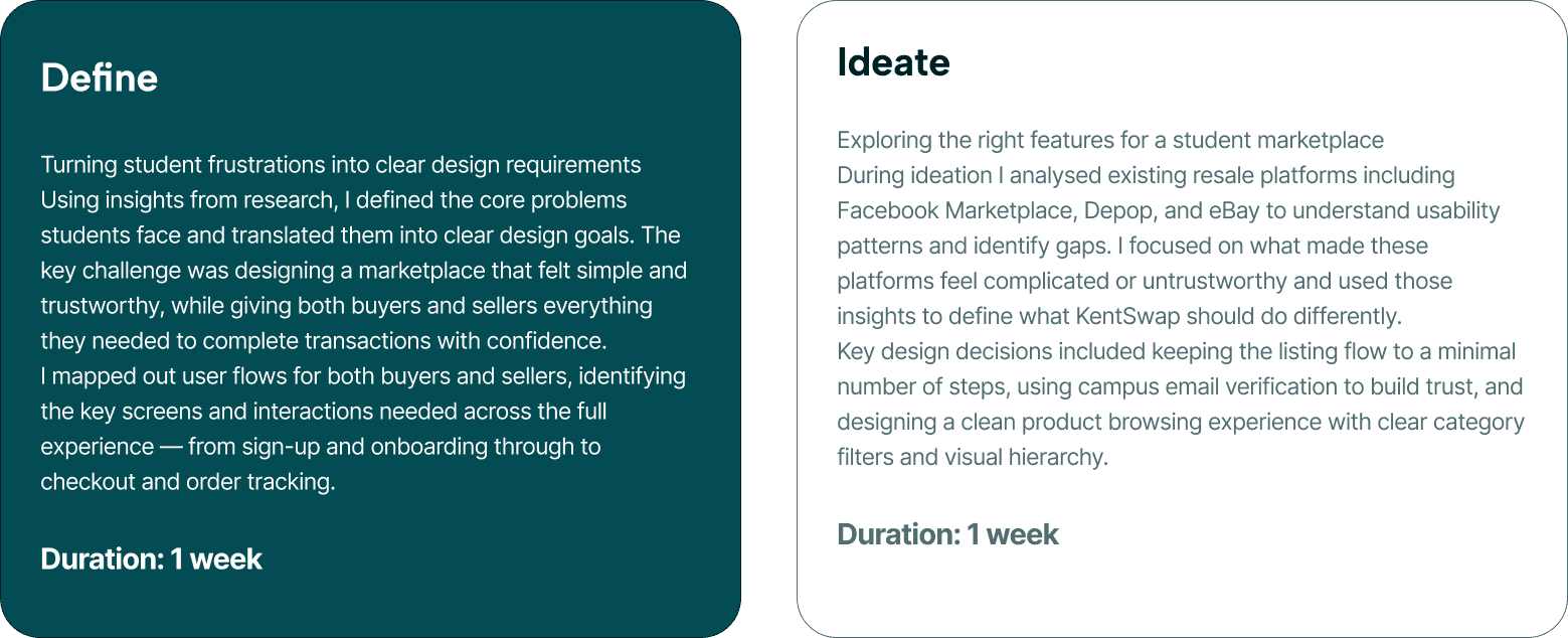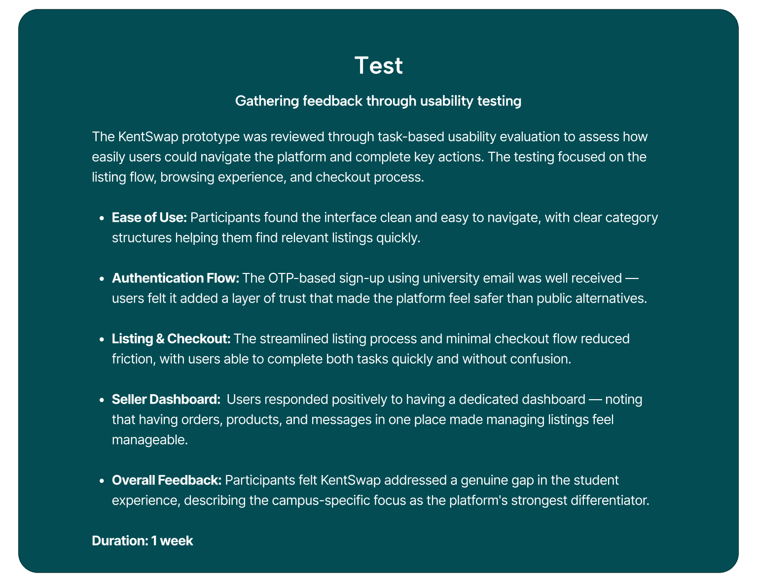 University students frequently face financial pressure, particularly around the cost of textbooks, electronics, and everyday essentials. While platforms like Facebook Marketplace and eBay exist, they are not designed with students in mind — they lack campus-specific trust, are cluttered with irrelevant listings, and can feel unsafe for first-time sellers. KentSwap was conceived as a solution built specifically for the University of Kent community — a dedicated space where students can confidently buy, sell, and swap items with people they share a campus with.